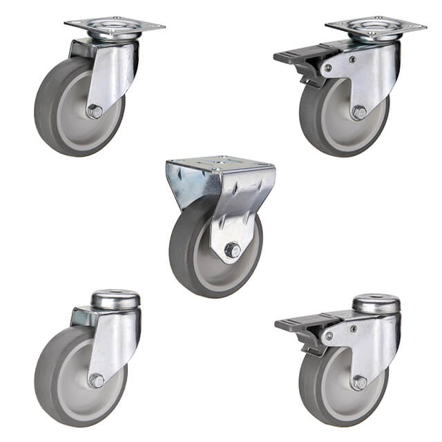 With high impact strength and good wear and tear resistance TPR wheel, it’s applied to applications like dollies, service carts, display stands, mobile storage cases, etc, also popular among DIYers.