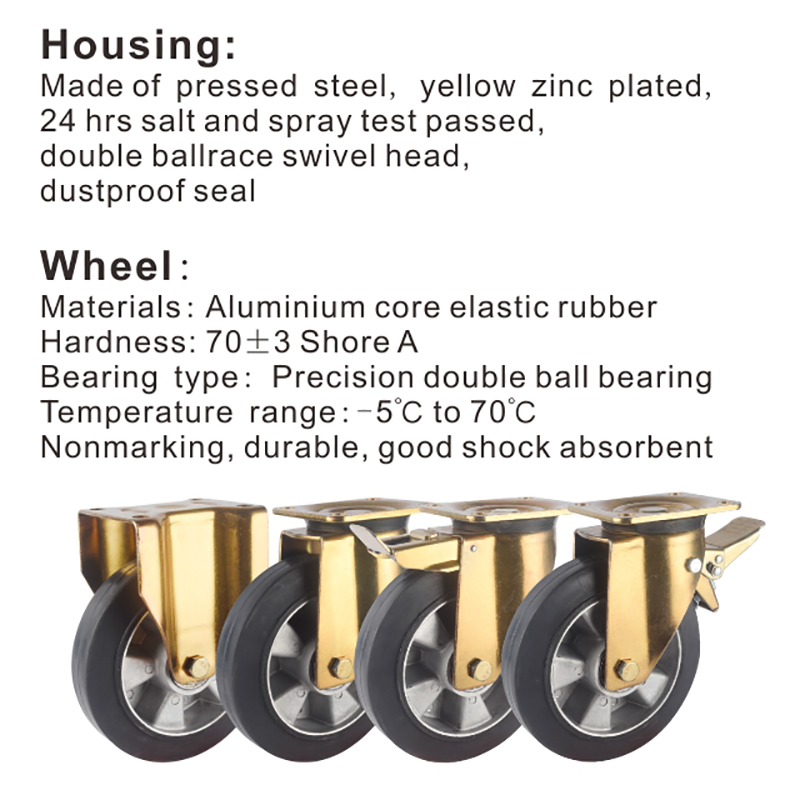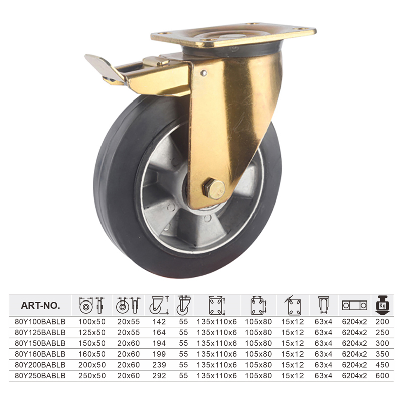 80 Series Machinery Dual Brake elastic rubber Caster