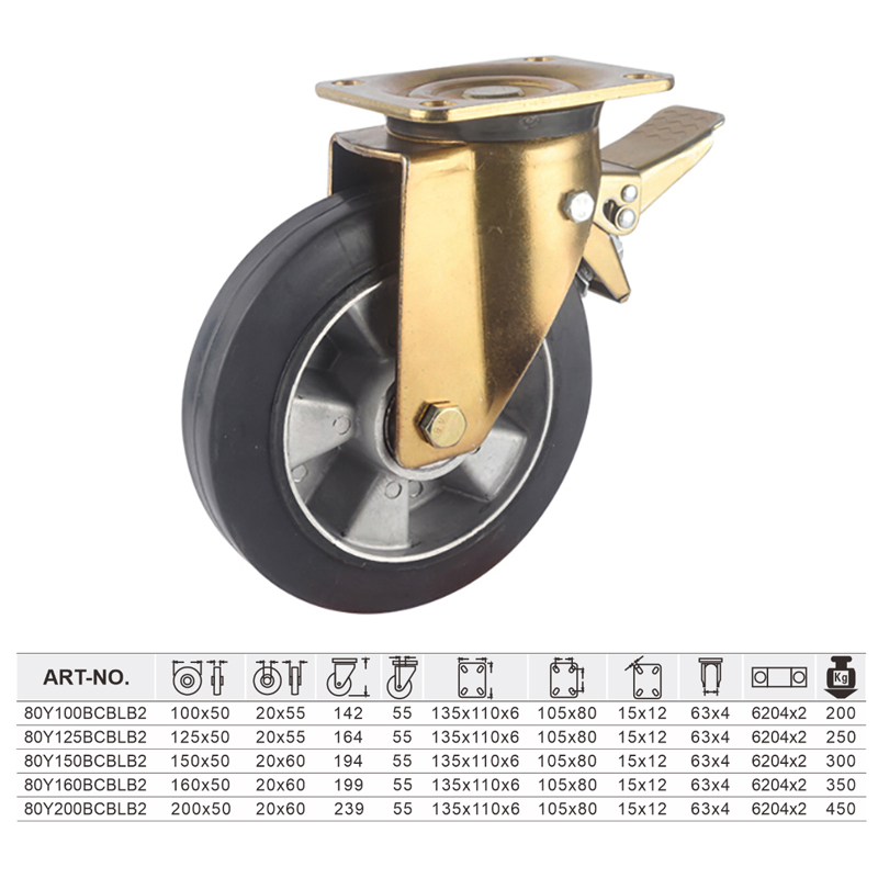| Wheel options | PU on cast iron-Double ball bearing, PU on aluminum-Double ball bearing, Elastic rubber on aluminum core, Nylon (Polyamides)-Balling bearing |